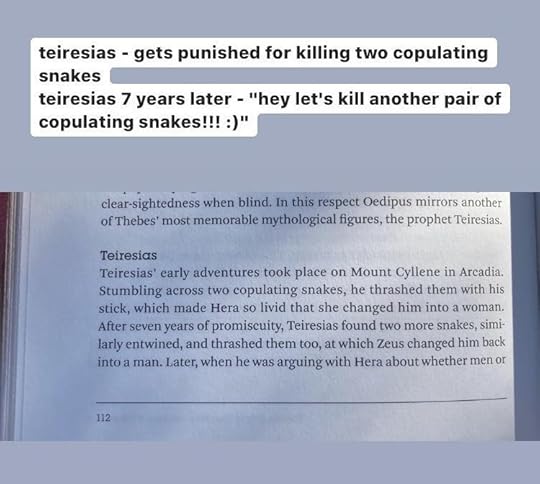 I got it to learn a little bit more about the Greek mythology but honestly, I thought the chapters were a little bit too long for me and I only read the ones that I really wanted to but overall it’s a good book.