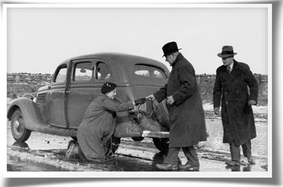 But you can't miss this book for many other reasons too. Historical ones, for instance. Travelling coast to coast from NYC to Los Angeles and then backwards on their old "noble grey mouse colored" car. the two Russian writers meet Ernest Hemingway and Henry Ford, Bette Davis and Upton Sinclair. They visit General Electric factory and Carlsbad caves, they are introduced to Navahos and walk on the suspended gigantic wires of a still under construction Golden Gate Bridge. They picture an exhilarating description of a football match in San Francisco and are disgusted by a corrida in Juarez, Mexico. And at the same time Ilf & Petrov make an extremely accurate social and economic account of the US, being able to foretell the clockwork mechanism that recently leads to the subprime crisis.