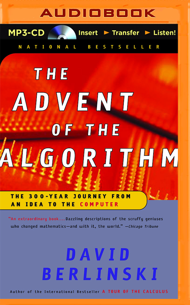 Subtitle: The 300-Year Journey from an Idea to the Computer. Berlinski's prose occupies a hazy territory between fiction and not. The subject matter is fairly arcane and technical (I am guessing that 2/3 of the general populace doesn't even know what an algorithm is, much less care to read a book about its history). His idea of how to tell its story is to fill it with imaginary scenes such as Leibniz attempting to tell his patron, the Duke of Brunswick, about his new creation, except that the Duke interrupts him due to an incontinent bladder. You can imagine how that illuminates the invention of the algorithm.