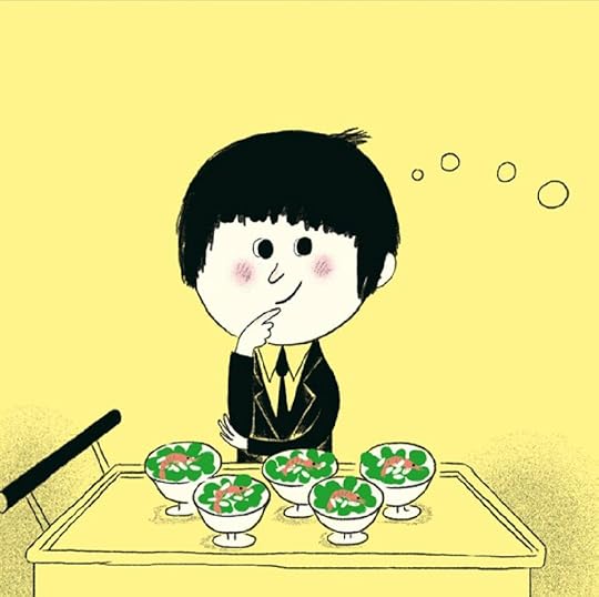 A small boy is SO bored at a dinner with the executives from his father's company, he thinks he might just die of boredom! So he's happy to help when his father asks him to bring in the salads from the kitchen. However, when the boy looks at the beautifully prepared shrimp salads laid out to be served to the guests, he gets a strange idea. “I'm not sure why, but looking at the salads, I suddenly thought of worms,” he explains. “The worms I use for fishing bait that I keep in the fridge, way at the back, behind the yogurt.” And just like that, the boy has found a way to turn the boring dinner party into anything but!