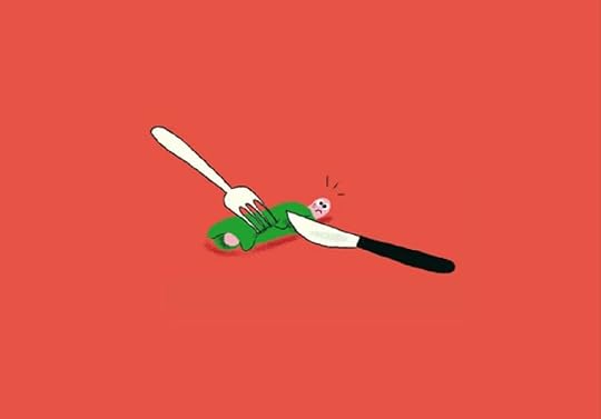 Dare he even think of what to do with them next? Yep, he schemes and he smiles and then he adds an extra garnish to the salad - one that will liven up the deadly party for sure. Oh my!