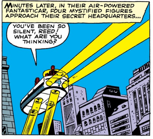 This issue introduces the Fantasticar and the lair / control center of the Fantastic Four (later the Baxter Building?)
