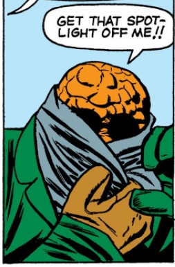 And Ben Grimm decides the best way to try and disguise himself in the public his to dress like this.