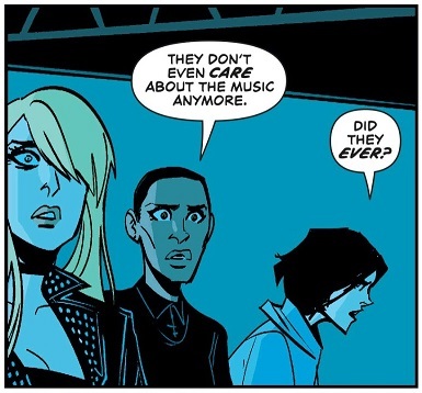Honestly, I was expecting more from this. It seems like all of the stakes were thrown into the last issue instead of building from the first issue. The issues prior were more focused on the band aspect than the main problem they were supposed to be facing. All of a sudden we have a giant alien invading.