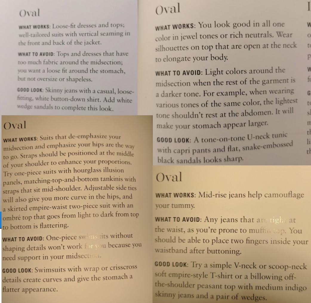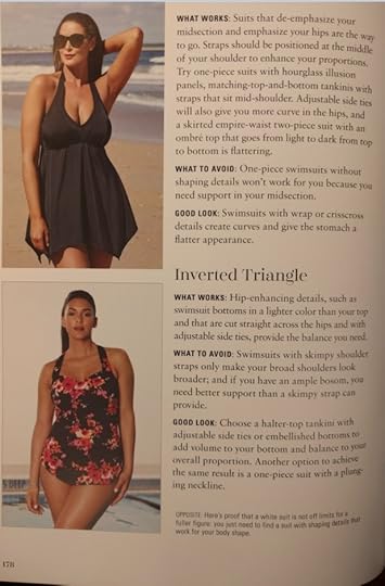 What was even more disappointing was half of the photos seemed to be culled from Google images and were of model models -- you know, the size and unders. Selling a book that purports to be about body positivity and "living your best life" while using photos of model models sends a confused message. (And honestly? I know she's using the models to illustrate the different types of body types and clothes, but they all looked the same.)