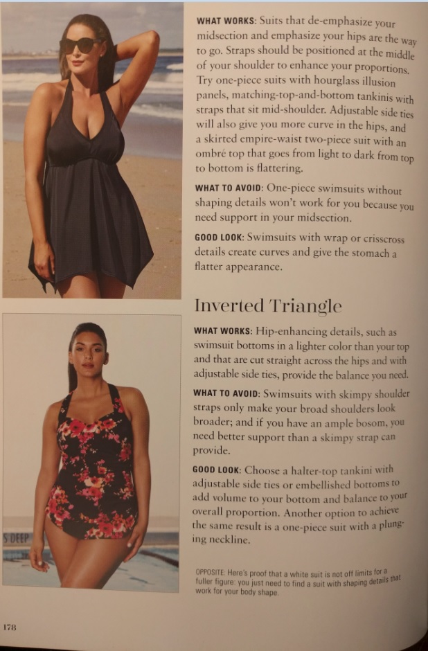 Some beautiful women in swimming suits. And some advice on how to select the best swimming attire for every body shape: