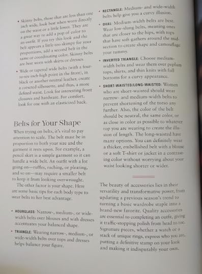 Enjoyed this book and learned so much. Heading off to purchase shapewear immediately! She does a great job of laying out not only advice but wardrobe essentials too