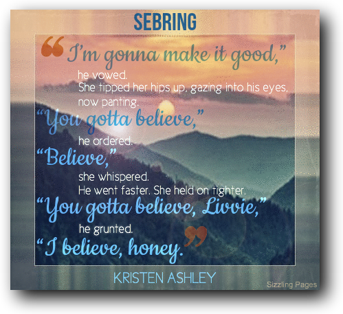 I had such high expectations for this book! But this was not Kristen Ashley at her best. I liked Knight way more than I did Sebring. I couldn't connect to the characters, I felt more emotions when I read about Nick and Hettie than when I read about him and Olivia. The storyline was perfect, the characters were wonderful but it lacked the connection I craved. I would have loved more developpement and depth. If you're a fan of the series then definitely read this one, the epilogue was the best I had ever read so far. The feels Oh. My. God I loved the last part of the book sooo much!!