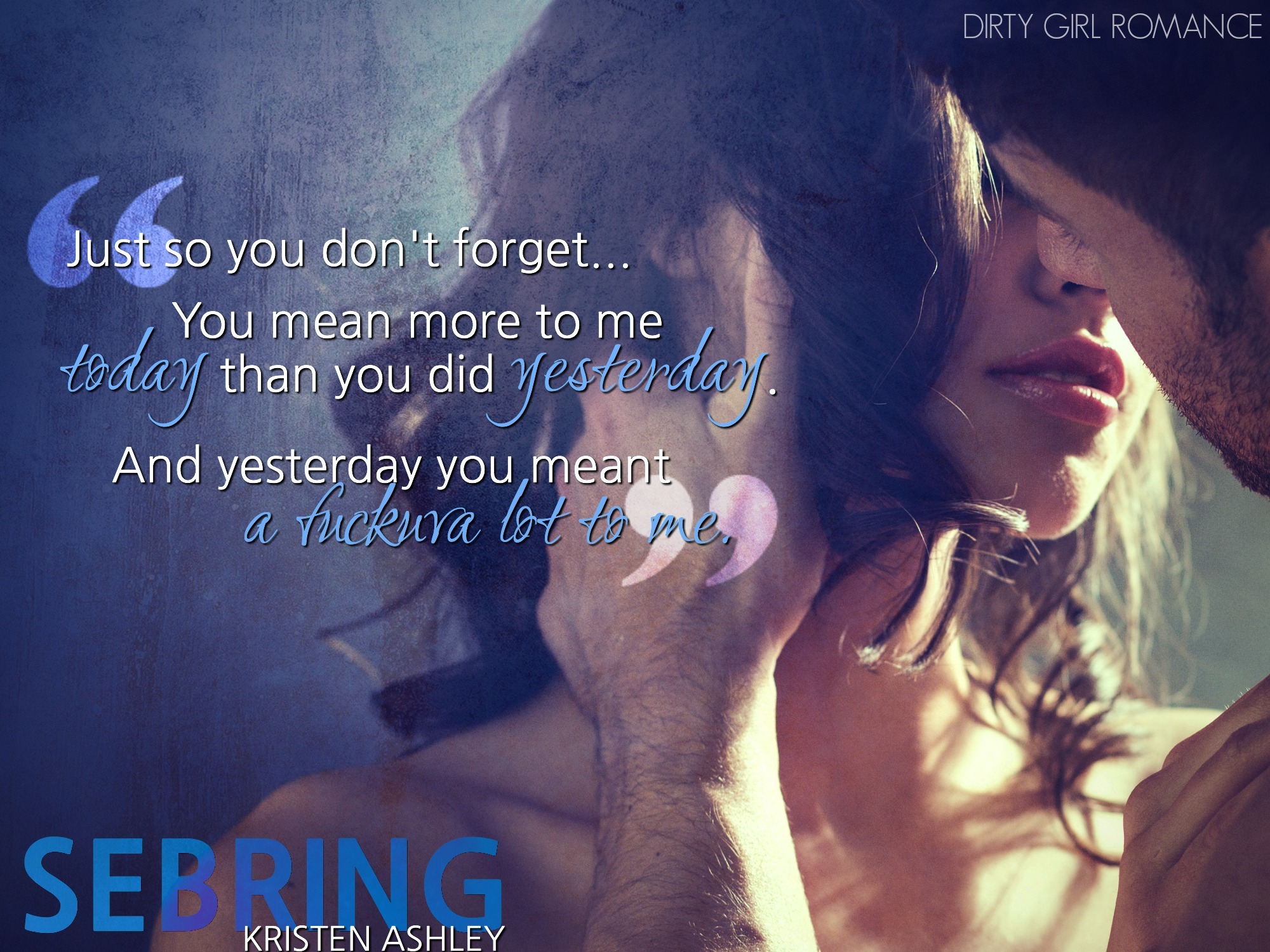“Just so you don’t forget,” he began. “You mean more to me today than you did yesterday.” Her lips parted and her eyes got bright a different way. “And yesterday you meant a fuckuva lot to me,”