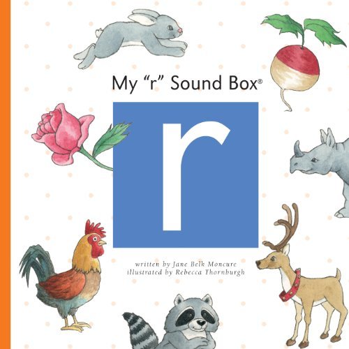 Little r has an adventure with items beginning with his letter's sound, such as a rooster, a raccoon, and a rowboat and raft on a rainy river.