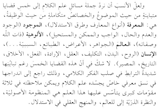 حسنًا هذا الكتاب مختلف نوعًا عن باقي الكُتب الأخرى التي سبق وقرأتها في علم الكلام الكتاب- كعادة غيره من الكتب – يقوم بعرض تأريخي لعلم الكلام من حيث أسباب ظهوره، ومراحله، والفرق المختلفة وأفكار كل فرقة منها وتاريخها الخاص. لكن ما يميز هذا الكتاب هو طابعه التحليلي، فلا يتوقف عند مجرد سرد الأحداث والأفكار بل يناقشها ويستنبط ما يميزها كما يُضيف على ذلك تحليل ل"منهج" علم الكلام الذي اعتمد عليه المتكلمين في مختلف مراحله وبالتالي العثور على الثغرات والإشكاليات المنهجية التي أدت في النهاية إلى اختفاء علم الكلام نهائيًا رغم أنه لا يقلّ أهمية عن غيره من العلوم الإسلامية الأخرى كالفقه والحديث... إلخ وهذه رؤية جديدة لأسباب تدهور علم الكلام، بخلاف ما نعرفه من نهاية علم الكلام بعد المحنة والصراع بين المعتزلة والحنابلة. وأعتقد أن كلاهما- المحنة والعيوب المنهجية –كانا معًا يشكلان أهم أسباب التدهور!