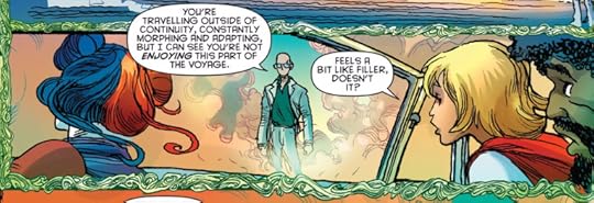 The ending of the fight was unexpected, but then things take this odd turn, a strange detour, before returning to the main focus of trying to get home. The final issue was just too much and felt like they were really dragging out the story.
