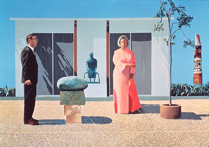 Ramiro Gomez appropriates art from masters like David Hockney, Jeff Koons and Diego Velázquez, and adds his own twist by replacing or adding the (mostly) latino household workers of the affluent rich. Born in a household of Mexican immigrant parents and drawing from his own experiences, Gomez knows all too well the differences between the elite and the workforce that serves them. With his works he brings to light the contrasts between these two worlds. top: Hockney's "American Collectors, Fred and Marcia Weisman", 1968 bottom: Gomez's "American Gardeners", 2014