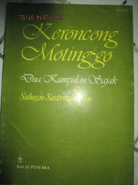 Dibuat terpukau oleh sajak-sajak Subagio sejak membaca Simfoni Dua. Sudah lama ingin baca Keroncong Motinggo, tapi baru dapat bukunya kemarin, di sebuah toko buku bekas di daerah Pondok Cabe.