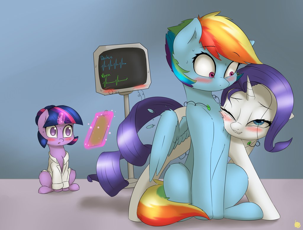 While enjoying Movie Night out with the girls, Twilight Sparkle discovers what it feels like to snuggle somepony. She then makes the logical next step: attempting to distill cuddles into portable, consumable form. Rainbow Dash just happens to be the test subject... erm... f-for science, of course.