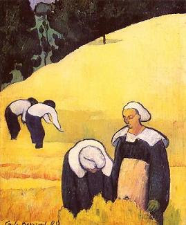 Il caso è risolto in quattro giorni. Proprio come quello di via Poma o di Garlasco o di… Che i poliziotti francesi siano più bravi dei nostrani? È un caso che ha a che fare con Gauguin e tutta la scuola di pittori di Pont-Aven. Tali artisti, guidati da Paul Gauguin, furono: Émile Bernard, Charles Laval, Henry Moret, Maxime Maufra, Paul Sérusier, Charles Filiger, Meyer de Haan, Armand Seguin, Ernest de Chamaillard, l'irlandese Roderic O'Conor e altri. Vivevano e dipingevano e viene da pensare che devono essere stati grandi paesaggisti, mentre invece dipingevano in tutt’altro modo come si vede bene da queste immagini.