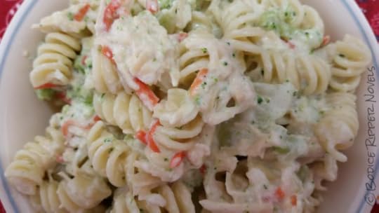 This was extremely good. I used spiral pasta instead of orecchiette (ear-shaped pasta). The sauce is made with cream (I used half and half) and parmesan cheese, that's it. I added raw broccoli and carrot, which I cooked in the water with the pasta, and 1/2 cup canned chicken. I didn't add any salt at all (the recipe called for 1/4 teaspoon!) because of the salty parm. This was very simple to make and tastes great and I'll continue to make this.