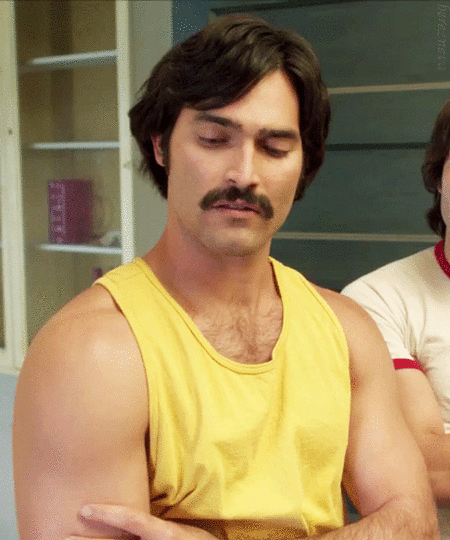 I was digging the long-sleeved polo, jeans, and loafers in a yeah, daddy kind of way. He caught me staring, and his pornstache twitched slightly.