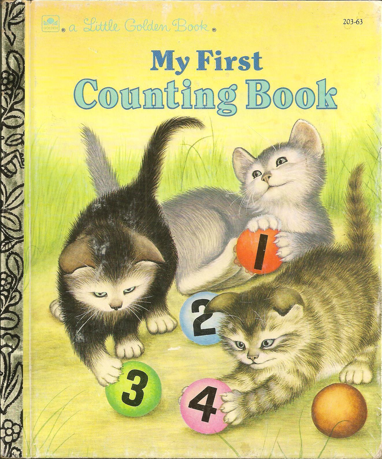 A counting book in classic Little Golden Book style that has aged well. Each number features a catchy little rhyme and a different animal. In the back, the numbers are repeated with items to count.