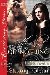 When Dorian finds an innocent in the middle of a gun deal will he blow his cover to protect him? In Little Bit of Nothing the eighth installment of Stormy Glenn’s Cade Creek series, Dorian’s honor is put to the test. He is already in a precarious position and finding Artie in the trunk of the car isn’t helping. But even when someone appears to be bad, Ms. Glenn has a trick up her sleeve. Dorian isn’t all that he appears but it is becoming obvious that he is becoming burned out. Will he be able to continue the charade without getting him or anyone else killed. I really enjoyed getting to know Dorian. We met him previously but with the focus on him, we see just how precarious his life is. I loved that even as he appeared to be an awful man, his character and honor still managed to shine through. And as he fell in love with Artie the choices he was left with became slimmer and less palatable. And Artie was given a raw deal. He is sold and the quality of the life he has left isn’t looking too good. That is until he meets Dorian. But can Artie accept what falling in love with Dorian will mean? This story was a wonderful addition to this series. Ms. Glenn gave us two men who needed each other in ways that were unexpected. Finding time to fall in love is at a premium and maintaining a safe environment is even harder to come by. But Ms. Glenn found a way for Dorian and Artie to learn how much they needed and loved each other. This is a wonderful addition to this series and I enjoyed seeing how Ms. Glenn extracted these two characters from the stickiness that has become their lives. Four Twinkling Stars