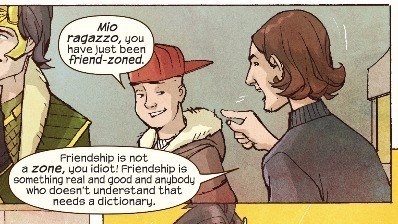 Thankfully things end well enough and Ms Marvel leaves with the words that while Valentine's Day is supposed to be about romance, other types of love such as friendship are just as important. This fits in nicely with a comment Mio makes earlier when a friend says he's just be "friend zoned." To which Mio firmly replies that friendship is not a zone and is real and good.