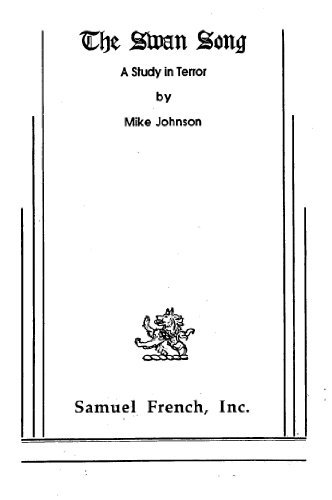 Thriller /3m, 4f / Interior / A depraved tale of mystery, murder, magic, madness, and hideous revenge, The Swan Song details the events of a single day from early afternoon to midnight. Olivia returns with her fiance to the creepy family manor after the funeral of her murdered parents. Miles desperately tries to get her away from the house and the eerie influences of her secretary, her ever tipsy aunt, a hidebound lawyer, a genuinely scary swami, and a kindly old housekeeper whose nervousness is contagious. Olivia won't leave until she contacts the spirit of her mother at midnight to learn who committed the ghastly murders. This shocker is crammed with harrowing suspense and the conclusion is guaranteed to scare the daylights out of your audience.