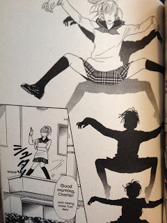 I had started this one a few years ago, but never got around to finishing it, so I figured I'd grab it from the library again. The plot is fairly standard shojo--young woman in school with a problem--but the solution is not a new friend or lifestyle change. This time, the girl splits completely, forming an aggressive, assertive personality that takes action---sometimes in violent ways--to do what her normal self cannot.