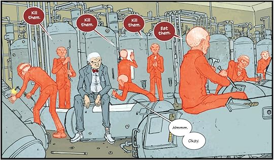 When you give Jonathan Hickman a big, shiny corporate superhero franchise like the Avengers or Fantastic Four, the result tends to be an intricate structure which - more than most stories - reveals itself best when contemplated as an intricate n-dimensional crystal. Whereas in a creator-owned (and thus surely more free) series set at the frontiers of science, he seems largely content to romp. A brutal, high-concept romp, for sure, but a romp nonetheless.