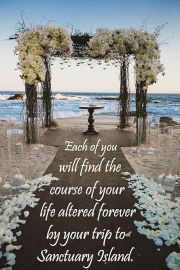 "I am betting that each of you will find the course of your life forever altered by your trip to Sanctuary Island. In fact, I'm wiling to bet each of you will find love there. -- Whoever is still single and unattached by the time I march down the aisle gets the helicopter."