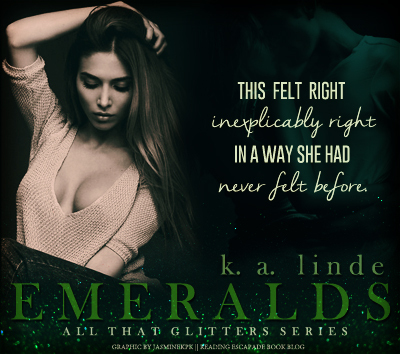 Emeralds, the latest in the All that Glitters saga by the incredible K.A. Linde, is an achingly addictive gem of a masterpiece that bleeds angst, reeks of scandal and sin, and screams resurrection---and I loved every frustrating and fabulous minute! This story scorches your body, and lights up emotions where they explode like fireworks. Emeralds is decadent, daring, and oh-so-delightful---a brilliant book in a series where I have devoured each story and each page of pure pleasure with lightning speed.