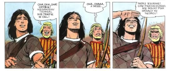 Tu nowa twarz Thorgala: Strona 5 według paginacji wewnętrznej komiksu (inna niż w wydaniu) Trudno napisać coś dużo o jednym zeszycie. Nawet jeśli to zeszyt w twardej oprawie. Oczywiście każda historia jest w widoczny sposób zamknięta, ale pewnie trzebaby przeczytać więcej, albo znaleźć wyróżniający się zeszyt. Można to podsumować tym, że "Thorgal" nadal jest przyjemny i będę kontynuował.