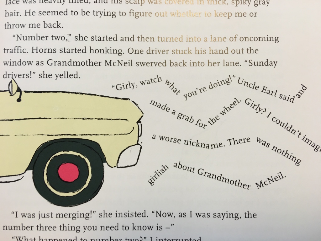 Even though this was written for a much younger audience, I still really liked it! It was very uniquely written in that the illustrations were included in the words, and the words wee also sometimes used in the illustrations. You kind of have to see it to know what I mean.