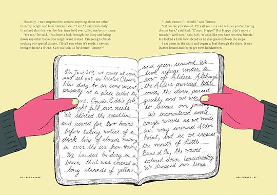 I am in love with what the author did with the text and its layout in this story about a 12-year-old and his transformative summer month with relatives in Nova Scotia. And I equally hate the actual Bevis and Butthead-esque illustrations. It's a beautiful story in a beautiful setting with interesting things the narrator is seeing for the first time - the illustrations don't do it justice.