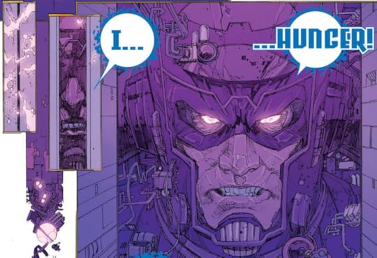 I know it’s temporary and part of Marvel’s weird “making the villains the heroes” thing they’re doing at the moment but I hate what they did with Galactus, essentially doing an Axis and reversing his alignment - he’s no longer the WorldEater, he’s the LifeBringer! They’ve even done away with his purple outfit and given him this gross yellow thing. Boo - give him back his purple hat!