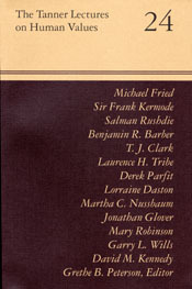 As new, brown cloth hardcover w gilt line and font on cover and spine, 691 pps. Appears unread without any writing, markings, etc. Dust wrapper has barely noticeable 1/4" closed tear on lower edge and tiny indent, now under mylar wraps. Please see our photo to confirm condition notes. Founded in 1978 at Cambridge University, The Tanner Lectures on Human Values have invited from the most respected academics, scientists, humanists in their fields to share their thoughts on the moral and intellectual life of mankind. The speakers in this volume, year 2004, include Michael Fried, Lawrence Tribe, Martha C Nussbaum, Mary Robinson, Sir Frank Kermode, ,Salman Rushdie, Benjamin R Barber, T J Clark, Derek Parfit, Lorraine Daston, Jonathan Glover, Garry L WIlls, and David M Kennedy. Each essay thought provoking and enjoyable. Addendum lists all previous lectures and participants.