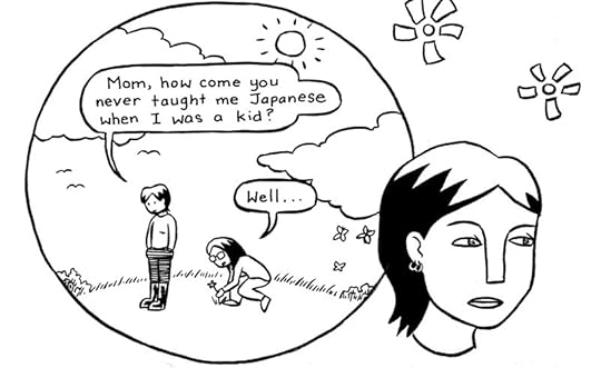 That said, I love her drawings. There were also some powerful parts of her trying to connect with a culture that was never passed down to her and frustration of trying to learn a language so different from what she grew up speaking. I imagine the parts about being mixed race and neither one or the other will resonate with lots of readers, especially ones who have mixed backgrounds themselves. I found it moving and fascinating when the memoir addressed those things directly. A few parts were quite funny too! Sometimes moving/painful and funny at the same time. Like here: