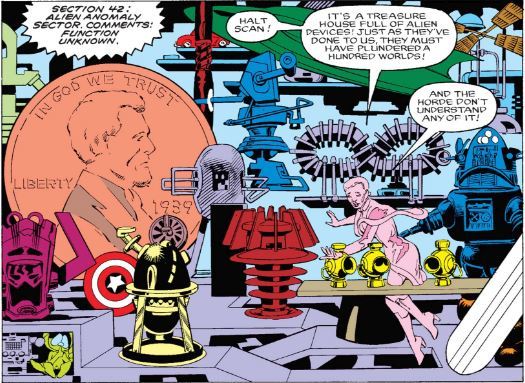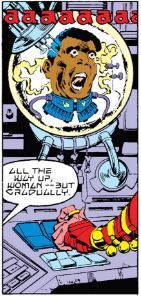The series feels very ’80s “post-Watchmen” but actually was released during the run of Watchmen. The series is grittier than many Marvel series and feels like a blend of other series (the artists in fact have fun making references to DC and Marvel Comics in scenes). The style feels little bit like G.I. Joe combined with Challengers of the Unknown and Justice League. It has the characters trying to be fleshed out, but it also will randomly kill them (sometimes even a bit unexpectedly in the case of Harold).