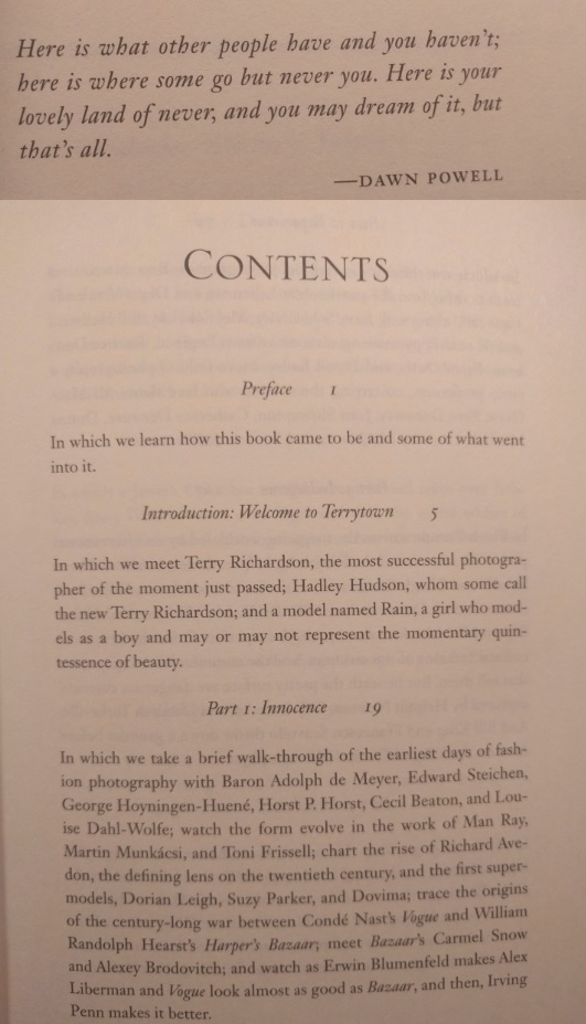 My biggest issue with the book is its structuring, or lack there of. I think it was trying to go chronologically to tell the story of fashion photography, but it did not pull that off. It all too often jumped from one year or several years apart to another several years apart and back again. It also seemed to be talking about key photographers during those periods, but just like with the chronology, it jumped back and forth from figure to figure to the point of becoming tedious.