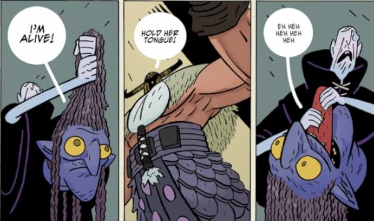 Agatha Blue Witch is about the only thing approaching a long-term story as evil characters are after her because she’s powerful (apparently - we don’t see anything in this comic that points to that), which means more foes for Norgal to lop in the future. The series seems a little one dimensional so far but it’s only one issue in. Also, it’s called Head Lopper and it’s swords and sorcery action-centric so it’s probably expecting a bit too much for it to be too layered!