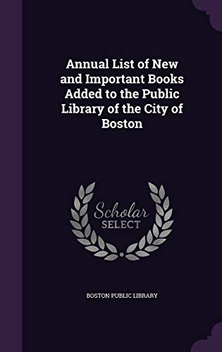 Annual List of New and Important Books Added to the Public Library of the City of Boston