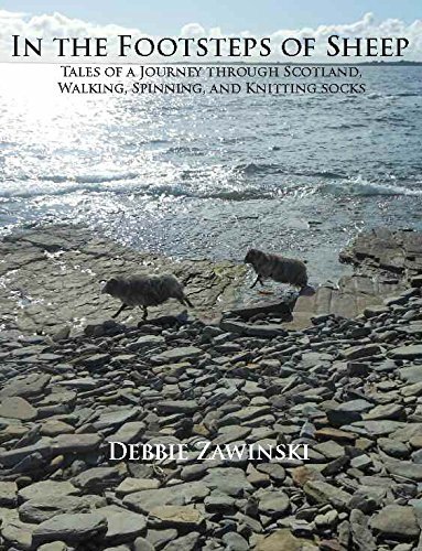 "In the Footsteps of Sheep details the completion of a mission the author, Debbie Zawinski, a Welsh-born Scot, set for herself: to travel and camp throughout Scotland, find cast off tufts of wool from 10 Scottish sheep breeds, then spin the wool on her spinning stick while walking (or waiting for ferries), and finally design and knit one pair of socks to represent each breed...all the while writing about her adventures and taking plenty of photographs."~Schoolhouse Press.