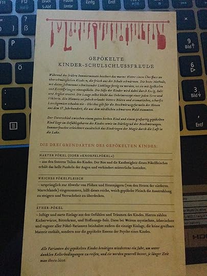 The book contains extra stories about Will's and Jacob's father (urgh, it just made me want to kill him longer and harder), an extra story called "The One For The Other", a plant guide, more recipes from the child-eating witch, songs, lores and a guide to different creatures and magical items from behind the mirror.