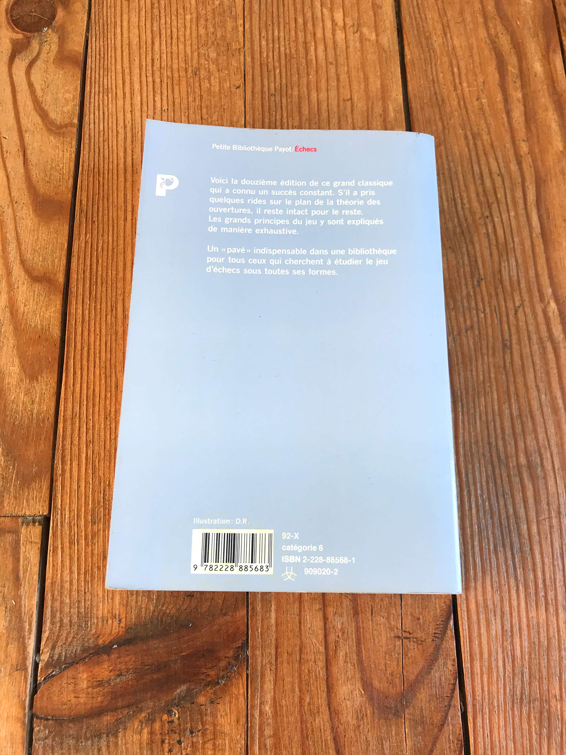 Voici la douzième édition de ce grand classique, qui connaît un succès constant depuis 1931. Dans ce modèle de précision sont répertoriés tableaux de mat, finales et finesses du milieu de jeu. Exception faite de la théorie des ouvertures, ce livre n'a pas pris une ride. Les grands principes du jeu y sont expliqués de manière simple. Un pavé indispensable dans une bibliothèque pour tous ceux qui cherchent à étudier le jeu d'échecs sous toutes ses formes.