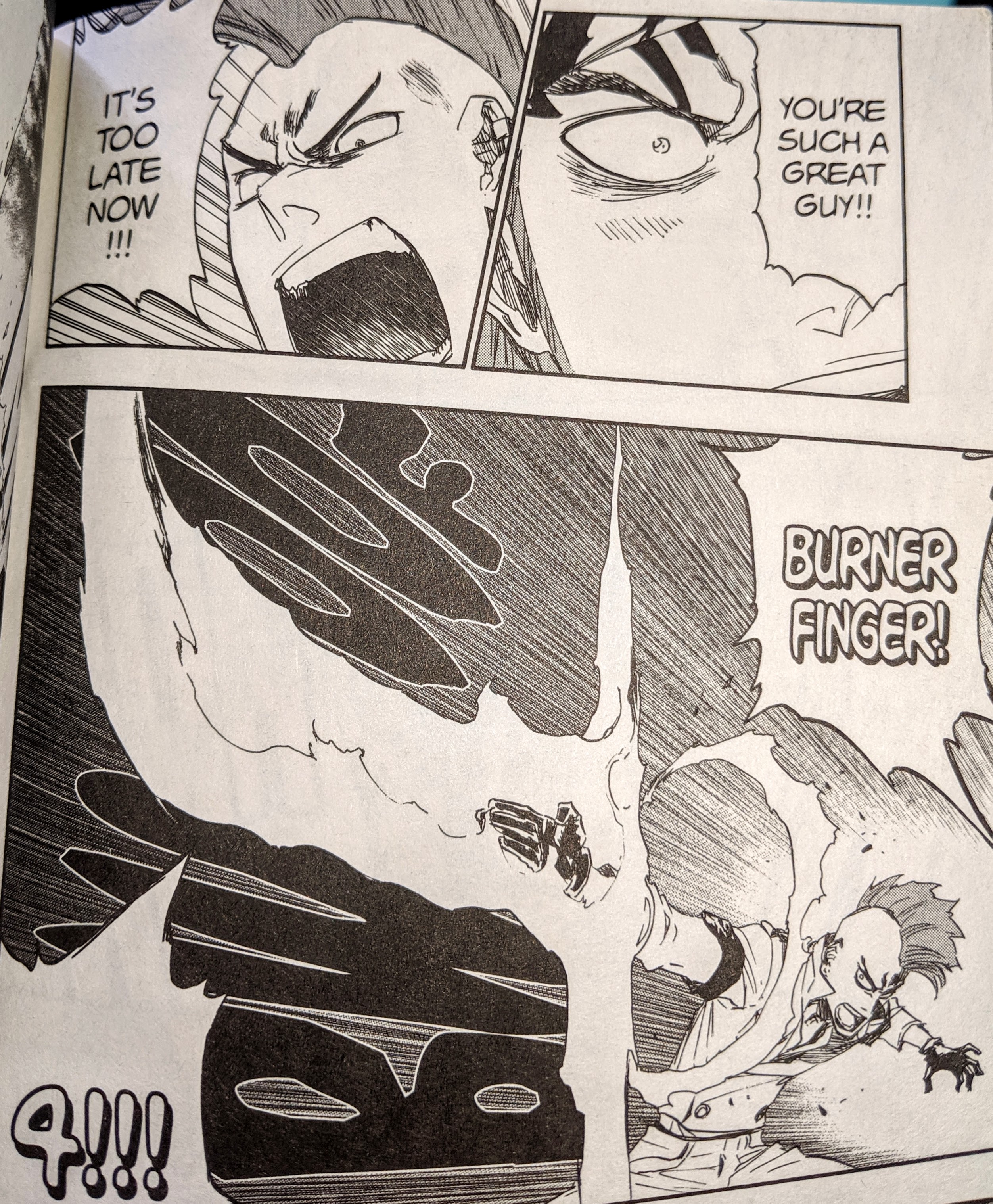 While there are some good moments, you can clearly tell the dive in quality that comes from Shonen Jump forcing Kubo to work while injured and in need of surgery. The gall of SJ for refusing to allow him to have a break he proposed (to literally heal) for his torn shoulder. I know. Even recalling it pisses me off. The industry does not treat mangaka’s well. Nevertheless, and sadly, I still have to judge the work accordingly.