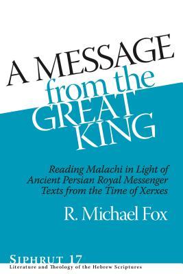 The academy has not been kind to Malachi. Indeed, some of the most influential and seminal studies on the book denigrate its style, message, and overall artistry. This negative assessment proves extensive in the history of scholarship. Furthermore, the studies demonstrating a more positive assessment of Malachi do so without offering serious challenges to these long-standing denigrations. Complicating the matter is the observation that critical study has proffered numerous suggestions for what Malachi contains while failing to provide a viable model of what Malachi actually is. A Message from the Great King presents serious challenges to the guild’s prior assessments and conclusions about the book. Through an interdisciplinary approach that synthesizes insights from literary theory, thorough historical reconstruction, and a close reading of the biblical text, R. Michael Fox makes a formidable case that a root messenger metaphor pervades the entire text of Malachi. Viewed and read through this new lens, Malachi’s artistry becomes more readily apparent and its theological message more intense and demanding. A Message from the Great King provides serious reassessment of the academy’s long-standing denigrations of the book and a compelling answer to what Malachi actually is. Accompanying these insights into Malachi are new methodological procedures and exercises that merit further attention and reflection.