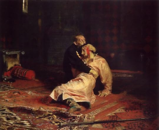 Ivan was a powerful ruler of Russia, but mad as a hatter near the end. He was always cruel and unjust, but the full-on paranoia, megalomania, abject destruction and torture, the excesses of food and drink and sex all led to not only filicide, Ivan killed the Czarevich with his own hands in a fit of rage, but his eventual terrible health and death.