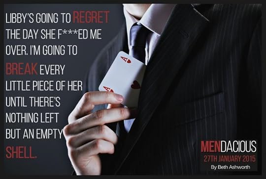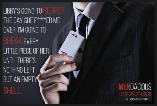 "I'm the bastard ex-husband who wants to see her fail. It's brilliant."With a cool title and a fabulous cover, "Mendacious" grabbed my attention immediately. I couldn't wait to read Beth's new novel. In this story I was introduced to Alex Lewis, a cocky, arrogant and ruthless man who was determined to dominate the world of investments. Alex wasn't always this way. During the prologue I discovered that Alex was left devastated and heart broken following the break up of his marriage to Libby. Seven years later and although he had worked his way to to top of his profession, he never recovered from the pain that Libby had caused him. When he found an opportunity to seek revenge on his ex -wife, he simply couldn't refuse.