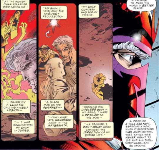 But, this is definitely better than the first collected edition...I think. I still have two more after this and I'm pushing through regardless of how awful I'm starting to feel now as I read this. A great bulk of the artwork also irritates me. This is how nineties visual style is, I guess, but Jim Lee's art has traces of the nineties style too but he managed to make his more refined and polished than most of these issues. I don't get it. I DON'T GET ANYTHING ABOUT AOA AT ALL except for the fact that Magneto is in love with Charles but we're supposed to pretend it's not the case. Don't expect my reviews to ever get better from this point. And you know what, I actually look forward to how Fox studios will adapt this into film next year.