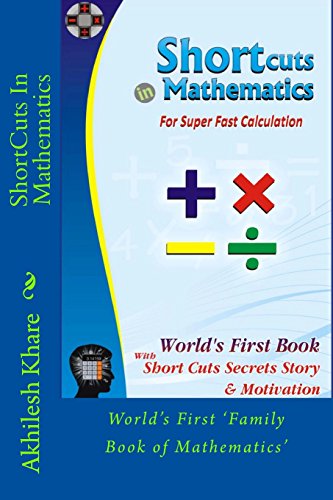 ShortCuts In Mathematics What makes it 'World's first family book of Mathematics" ? It's a family book to be read and used by the whole family. It's a family tonic of Mathematics anyone in the family can have it. It is for the Daughter / Son, Mother / Father and Grand Mother / Father as well ! It's world's first commercial blockbuster of Mathematics full of comedy, emotion and drama. It will make you laugh, think and wonder as well. It's a perfect personal financial planner that helps you make better future plans in terms of money. The grand Mother / Father will appreciate it as it tells the importance of saving money and proves it Mathematically. It's a loving gift to your parent, It's favourite to them because it helps them calculate the growth of their hard -earned money in easy and simple steps. It's a holy book of short cuts for modern generation. It offers calendar for double centuries, know day for any date instantly, much faster than your mobile. It's the most up-to-date book of short cuts for super fast calculation. The world's first complete infotainment family package in Mathematics with short cuts, Secrets, Story, Drama, Motivation, Financial Planner and Calendar as well. A valuable asset for Numerical Ability / Quantitative Aptitude Test of GAMT / CAT Exams. The secret ideas of quick calculation revealed. It's amazing to know the secrets of school days Mathematics. The book is written in story / conversation form and is useful for all. A story of two neighbours. One is Mathematician and the other is non-Mathematician. Traditional methods do not help in competitive exams so they want to make ShortCuts In Mathematics. The meaningful conversation between them is presented in story form. It tells a story, Motivates for success and Teaches Mathematics in interesting ways. It's a complete infotainment family package in Mathematics. Contents : 1. As and So 2. Dream Multiplication 3. Divisibility Tests 4. The Magical 9 5. Squares 6. Secret of Square root Method 7. Short cuts in LCM and HCF 8. Multiplying Your Money 9. Financial Planning 10. Interval Crunchy Snacks 11. Change and Restoration : All In One Ideas. 12. Arithmetic Progression 13. Binomial Theorem 14. Remainder and it's Uses 15. Short cuts in Division 16. Divisibility Secrets 17. Triplets 18. The 9 19. Magic Squares 20. The Team 11 21. Surds and Indices 22. Quadratic Equation 23. Fractions 24. Calendar for Double Centuries 25. Dream Division 26. Recurring Decimal 27. Units and Index 28. Roots 29. Multiplication II 30. Conclusion