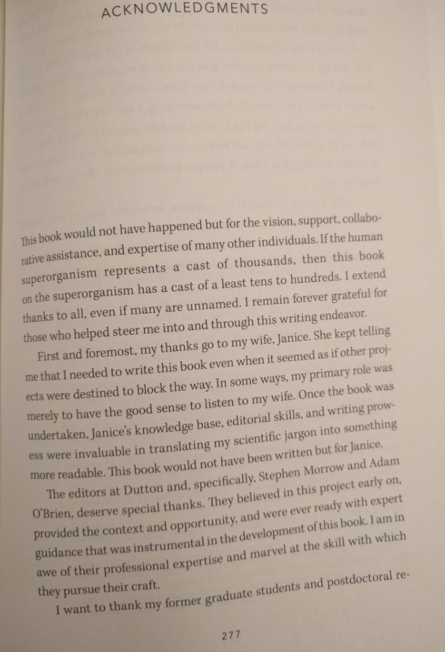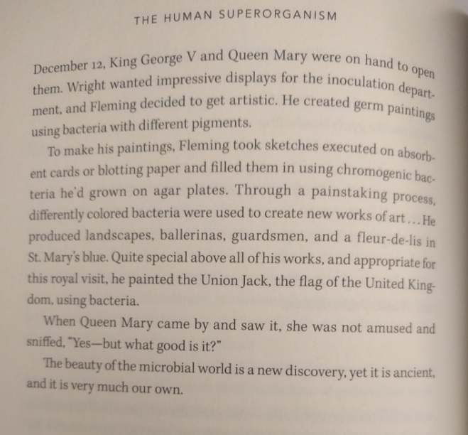 In this book, the author explains how we, humans are something different from what we think we are. We in reality are a colony of different organisms that live in our same space. He says that more than 90% of what we call "me" is actually "them", the tiny little different beings that have their own mind and will.